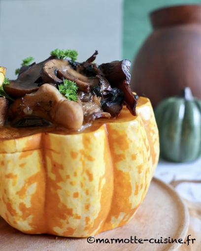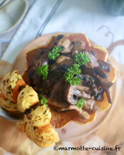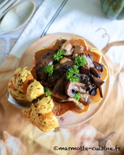 Patidou farci au lapin et aux champignons (Un légume, trois recettes)