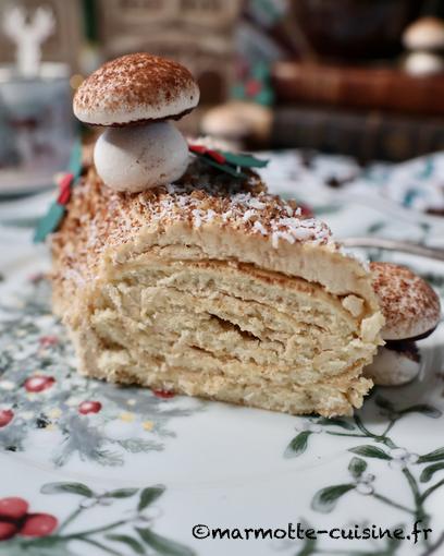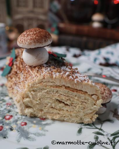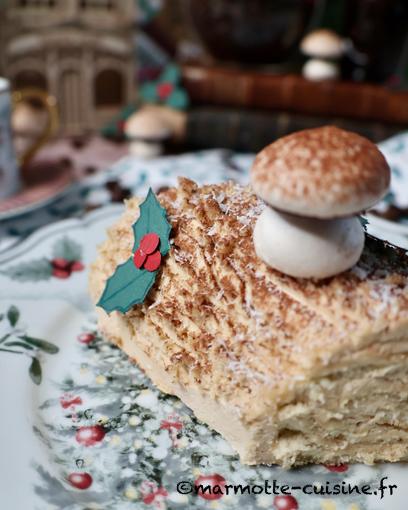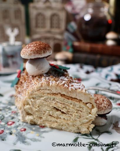 Cette bûche peut être réalisée la veille. Ajouter les éléments de décor juste avant de la servir.