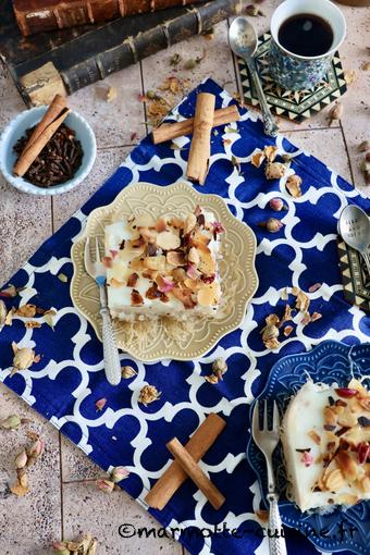 J’ai eu un énorme coup de cœur pour cette tarte rien qu’en la découvrant dans l’excellent Nistisima : quand je sors un livre des rayonnages de ma bibliothèque, je rentabilise. Ce coup de cœur s’est confirmé à la dégustation de ce dessert que l’on dirait tout droit échappé d’un conte des Mille et une nuit. En réalité, il est issu de la tradition ottomane et on le retrouve décliné dans les pays qui ont fait partie de l’empire ottoman.