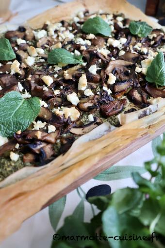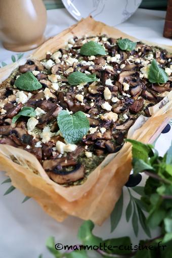 Tarte croustillante aux champignons, feta et menthe (Un légume, trois recettes)