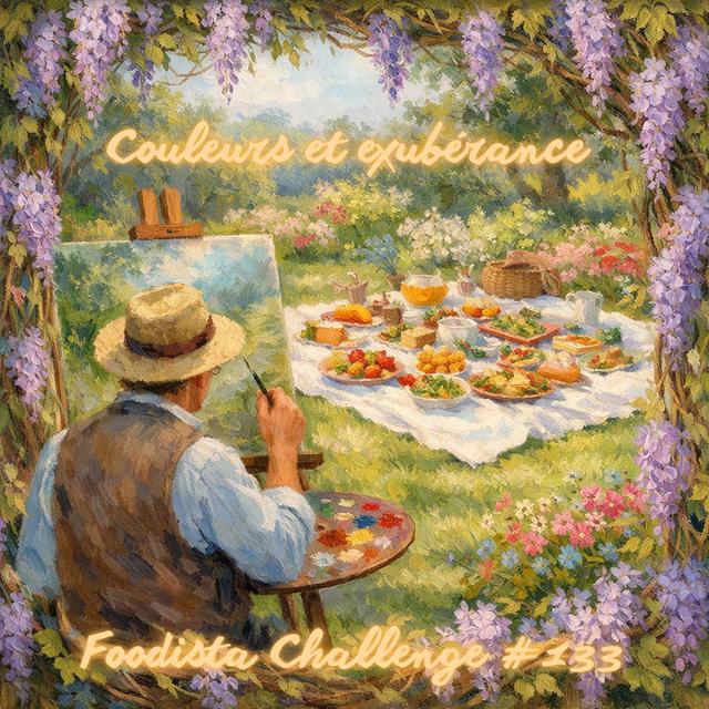 Je vous propose donc de prendre le contre-pied de notre époque visuellement ennuyeuse avec cette nouvelle édition du Foodista Challenge : Couleurs et exubérance . L’idée est donc de proposer une recette colorée dans une mise en scène gaie et chamarrée. Le printemps avec son exubérance végétale se prête bien à ce thème. La palette des nuances de vert est infinie, les couleurs des premières fleurs souvent jaunes ou blanches ou de la glycine et aux lilas mauves qui commencent à fleurir offrent une explosion de couleurs. Ce sont de très belles sources d’inspiration pour embellir notre quotidien.