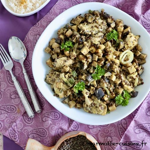Plaque au four d’aubergines, lentilles et poulet comme un curry