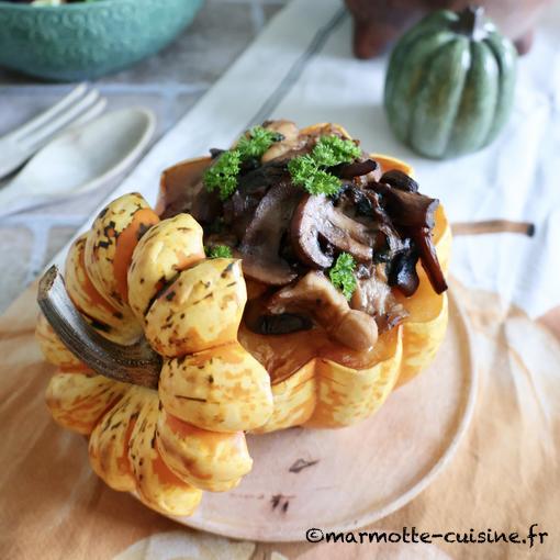 Patidou farci au lapin et aux champignons (Un légume, trois recettes)