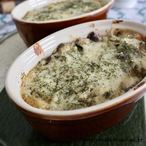 Gratin de pâtes aux champignons, œufs et aneth (Un légume, trois recettes)